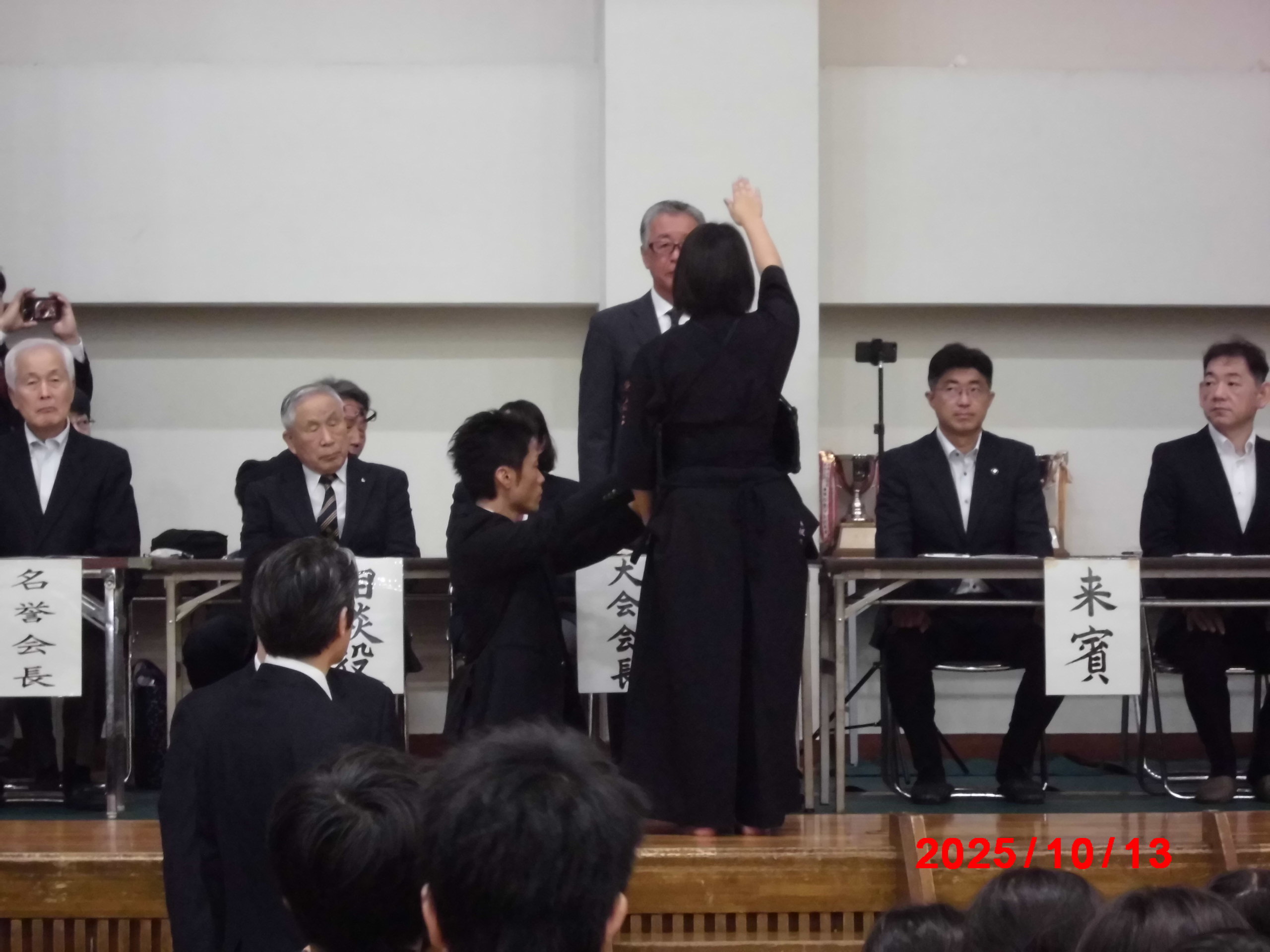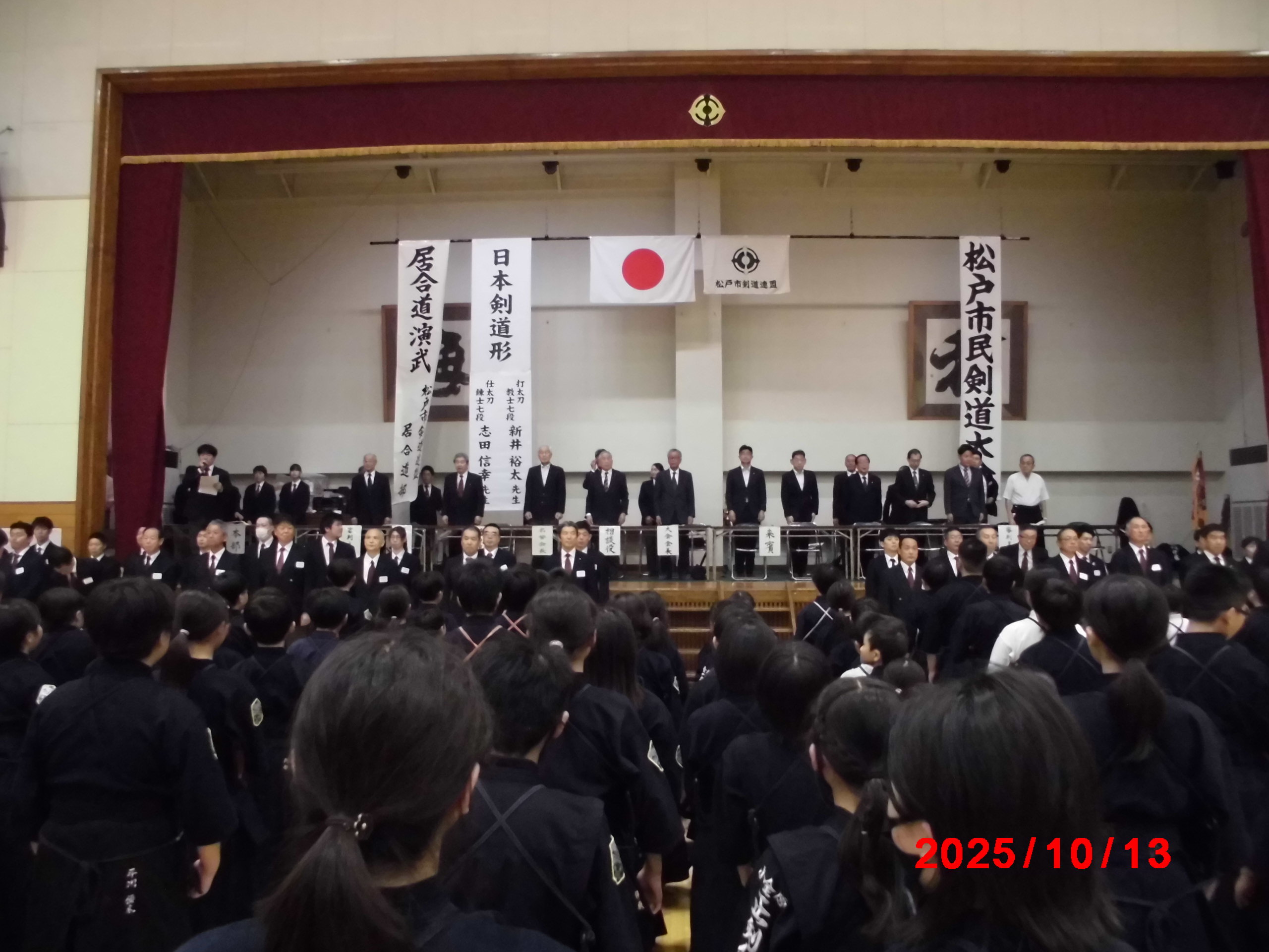 10月13日(月・祝)運動公園体育館で開催された、みだしの結果を報告します。裂ぱくの気合いの日本剣道形から始まり、参加人数の増加による少年から一般まで立派な試合が展開され、各支部の運営協力により盛会に終了いたしました。厚くお礼申し上げます。 第55回大会結果表 第55小学生団体トーナメント結果 第55中学生女子団体トーナメント結果 第55中学生男子団体トーナメント結果 第55一般団体トーナメント結果 第55開会式 第55選手宣誓 第55剣道形1 第55剣道形2