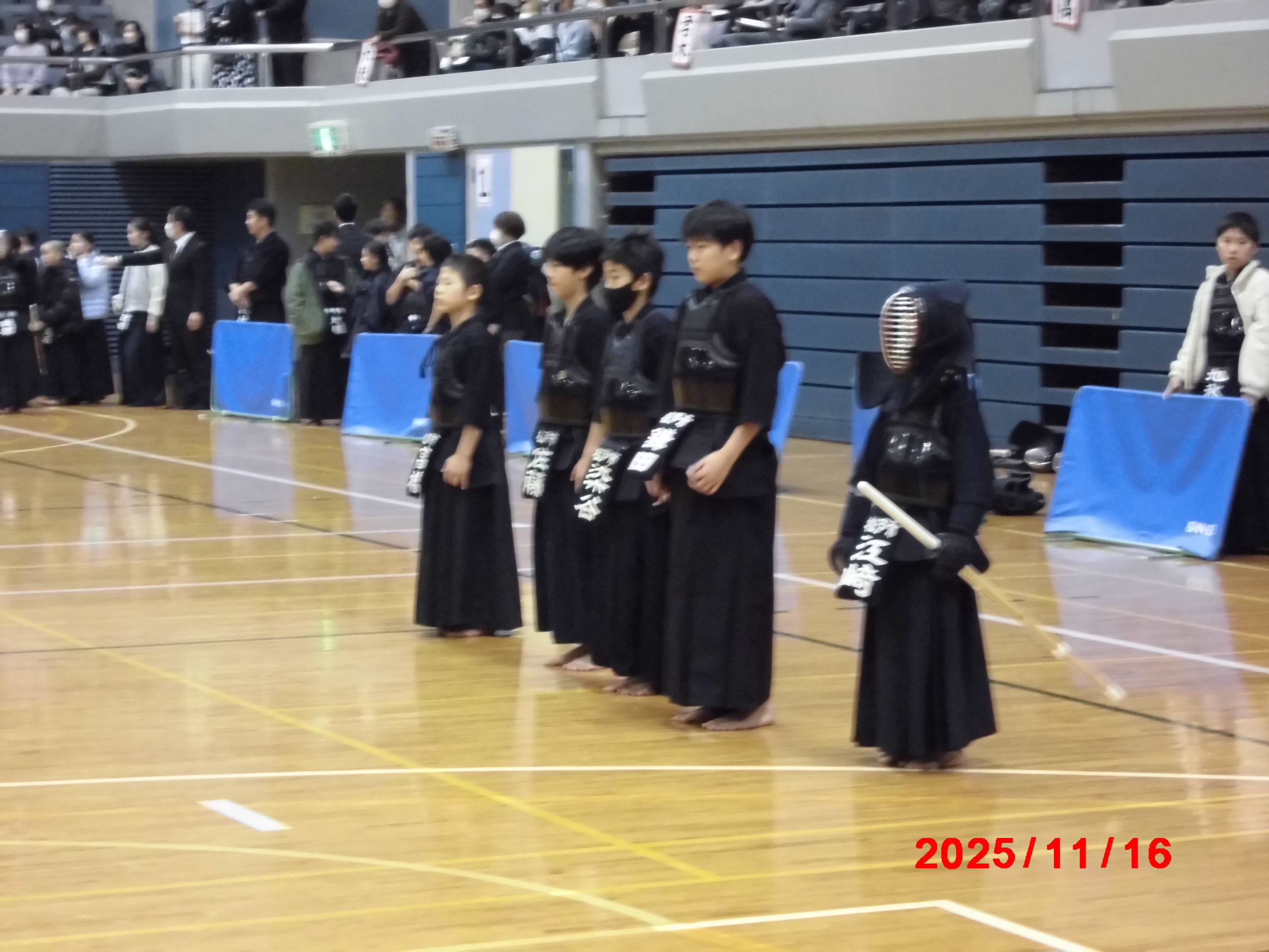 11月16日(日)、船橋市で開催されたみだしについては、中学生の部が2年連続第三位に見事入賞いたしました、おめでとうございました。残念ながら小学生の部は2回戦山武に敗退、高校生の部は習志野市に初戦敗退、一般の部も千葉市に初戦敗退いたしました。一般の部優勝は千葉市、準優勝市川市、三位山武・君津木更津でした。役員、選手、応援の皆様大変お疲れ様でした、ありがとうございました。なお、千剣連ホームぺージに詳細の全体速報が掲載されていますのでご覧下さい。 R7地区連盟開会式 R7地区連盟中学生3位 R7地区連盟小学生 R7地区連盟中学生 R7地区連盟高校生 R7地区連盟一般